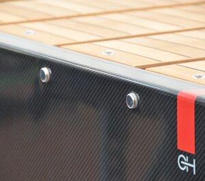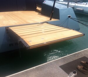 Options available: Carbon made stanchions, teak cover, spot light on walkway, head underwater light, head electric plug, remote control, hatch system.